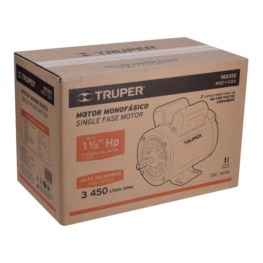 Motor eléctrico monofásico de 1 1/2 HP, alta velocidad, 102312