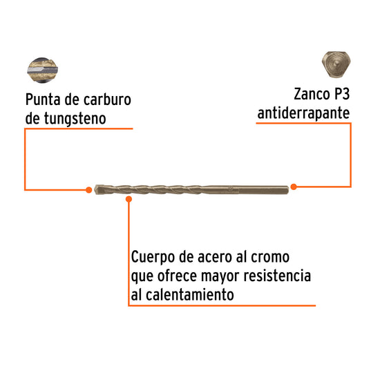 Broca para concreto 5 x 100 mm, Truper Caja con 10, 102340