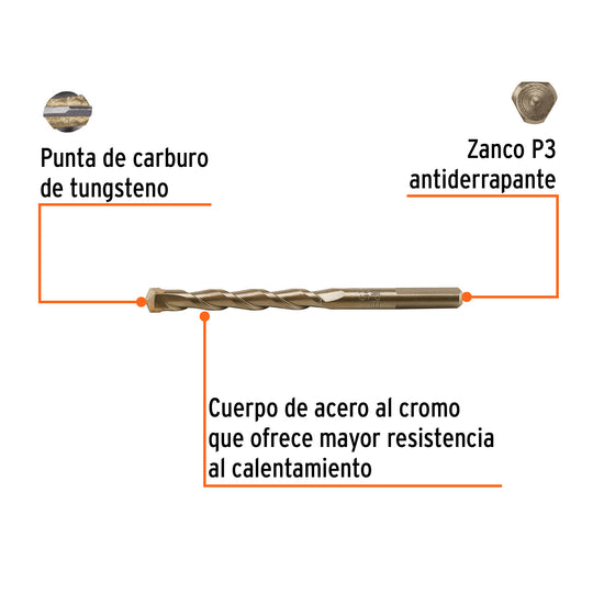 Broca para concreto 10 x 125 mm, Truper Caja con 10, 102348