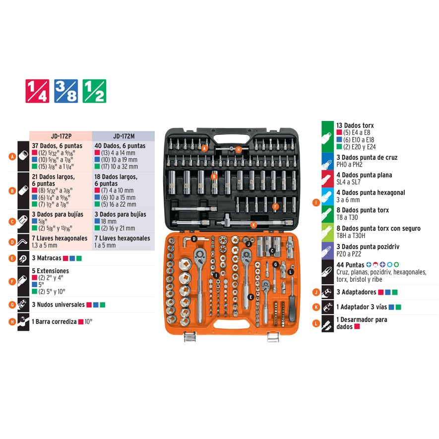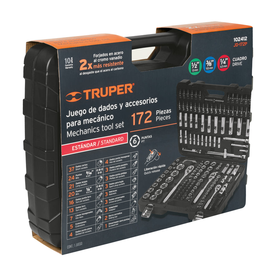 Juego de 172 herramientas 1/4', 3/8' y 1/2' std p/mecánico, 102412