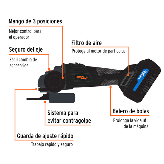 Esmeriladora angular inalámbrica 4-1/2', 20V, sin carbones, 102449