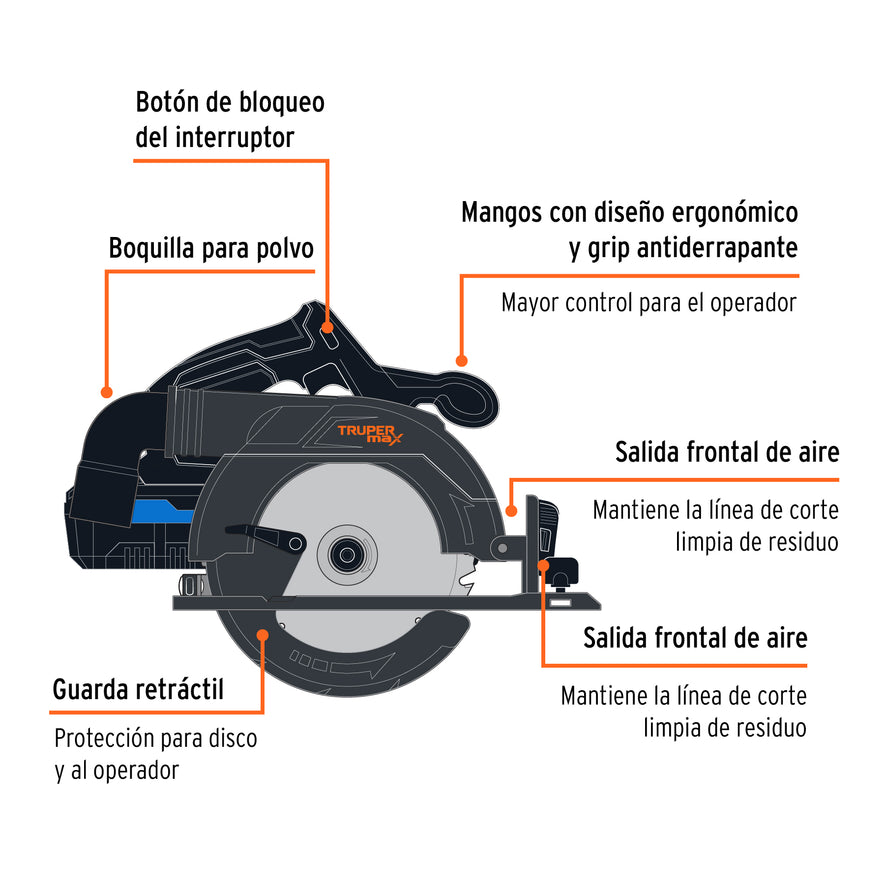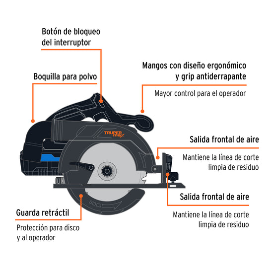 Sierra circular inalámbrica 6-1/2', 20V, sin carbones, MAX, 102480