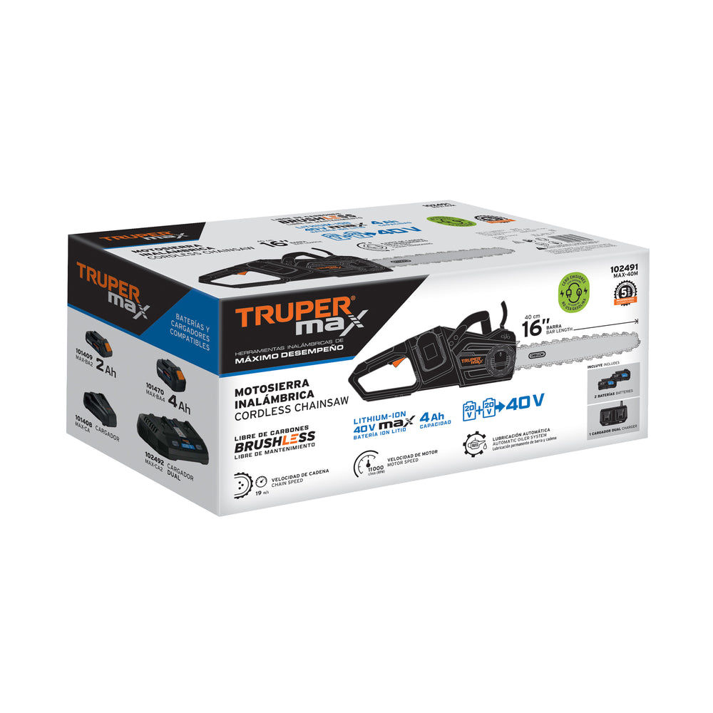 Motosierra inalámbrica 40V, sin carbones, TRUPER MAX, 102491Motosierra inalámbrica 40V, sin carbones, TRUPER MAX, 102491Motosierra inalámbrica 40V, sin carbones, TRUPER MAX, 102491