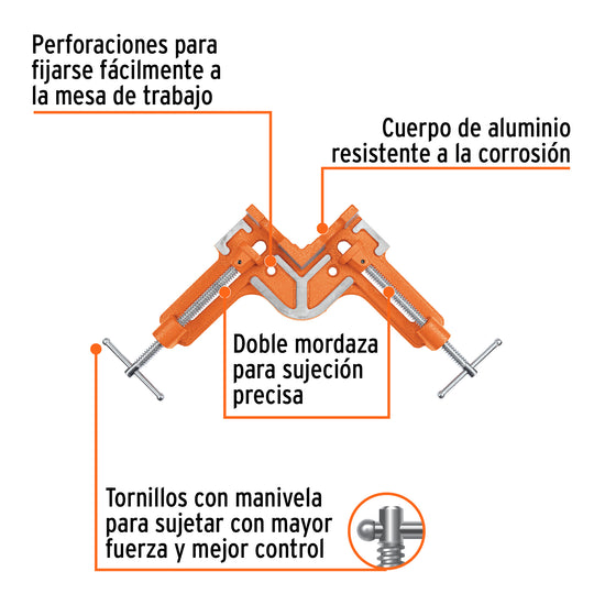 • Sujeta material de igual o diferente espesor en ángulos rectos