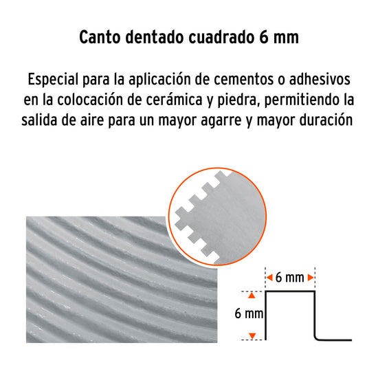 Especial para la aplicación de cementos o adhesivos en la colocación de cerámica y piedra, permitiendo la salida de aire para un mayor agarre y mayor duración