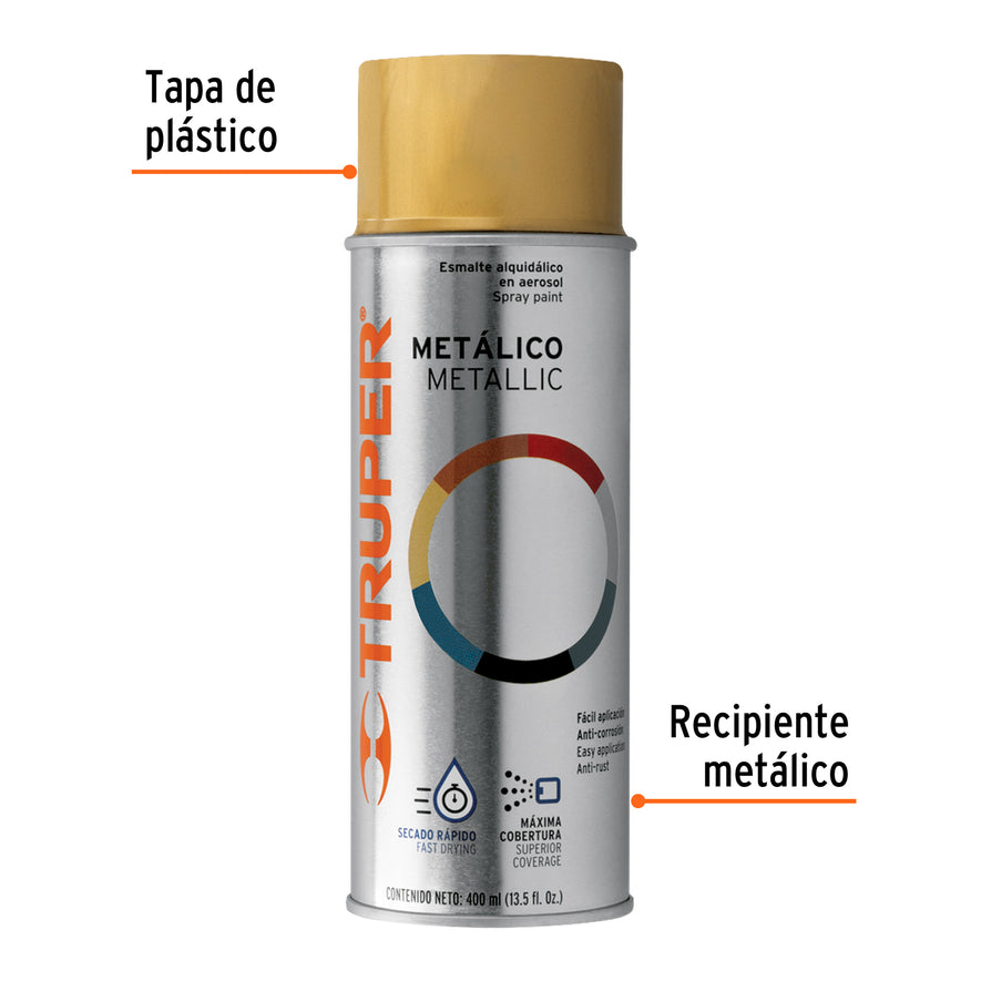 Pintura en aerosol, oro metálico, bote tradicional, 400 ml Caja con 6, 102845