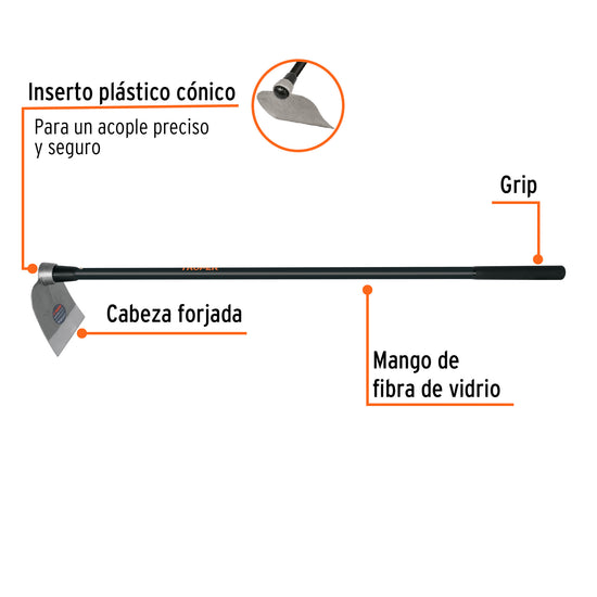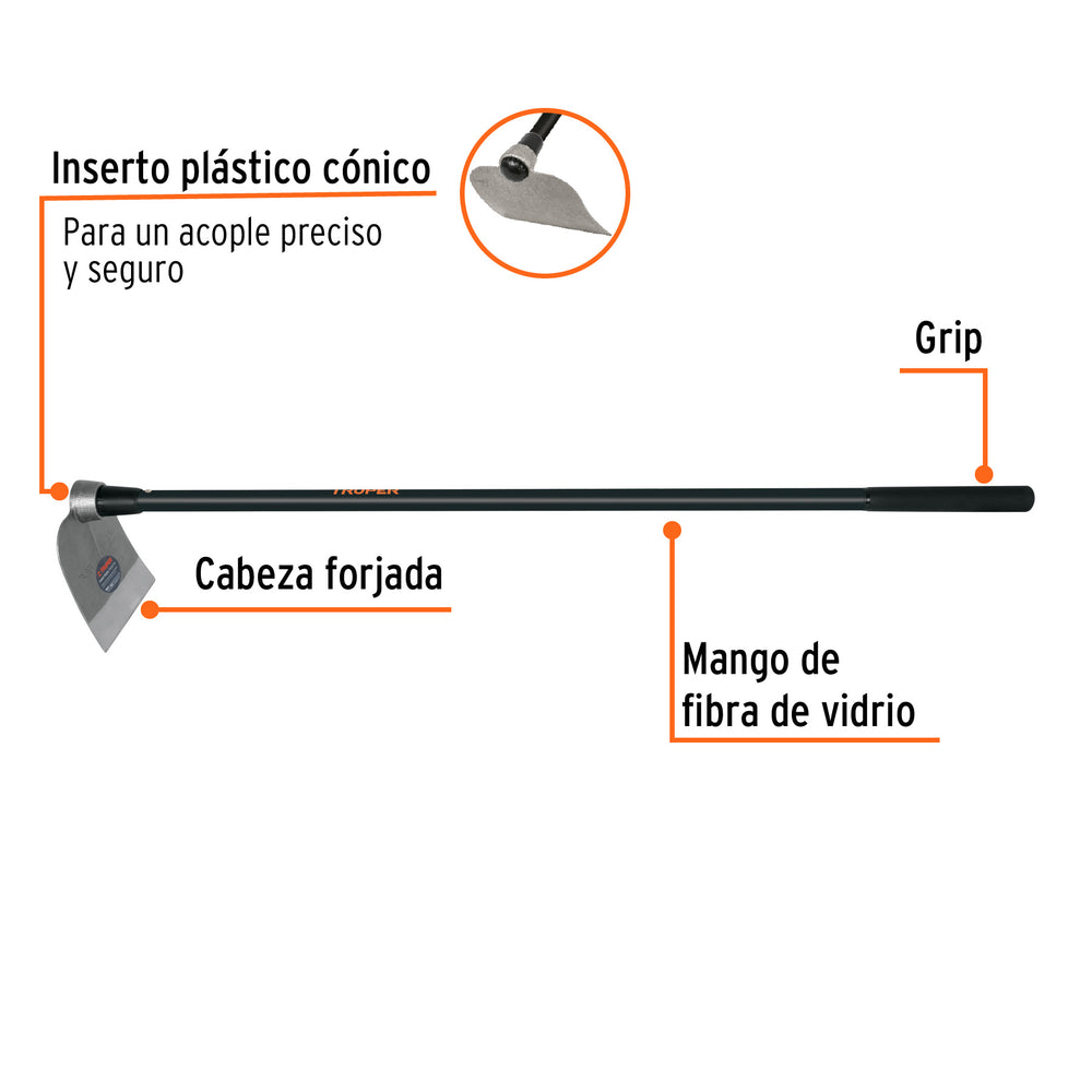 - Mango de fibra de vidrio más resistente que los mangos de madera con inserto cónico para acople preciso para mayor seguridad
