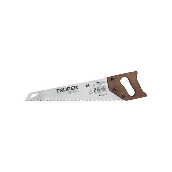 Serrucho Rapid 18', 7 DPP, mango de madera, Truper Caja con 3, 102950