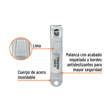 Corta uñas 3' acero inoxidable, Truper Caja con 6, 103010