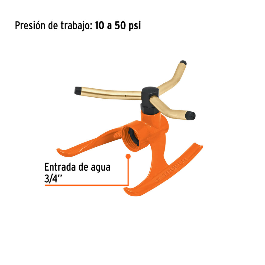 Aspersor b/metálica giratorio 3 brazos de latón, Truper Caja con 6, 10307