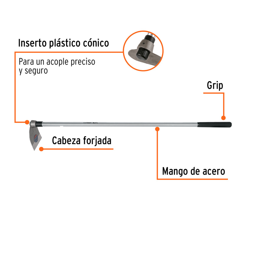 Cabeza forjada en una sola pieza con nervio central para mayor resistencia al impacto y disminución de la vibración, acabado pulido y preafilado