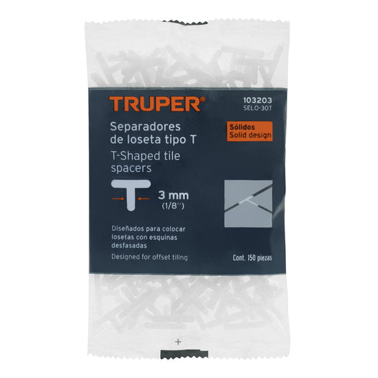 Bolsa con 150 separadores 'T' de 3 mm de losetas, TRUPER Caja con 6, 103203Bolsa con 150 separadores 'T' de 3 mm de losetas, TRUPER Caja con 6, 103203Bolsa con 150 separadores 'T' de 3 mm de losetas, TRUPER Caja con 6, 103203