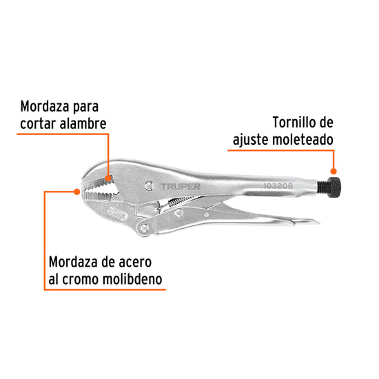 - Mordazas rectas de acero al cromo molibdeno para mayor durabilidad y agarre