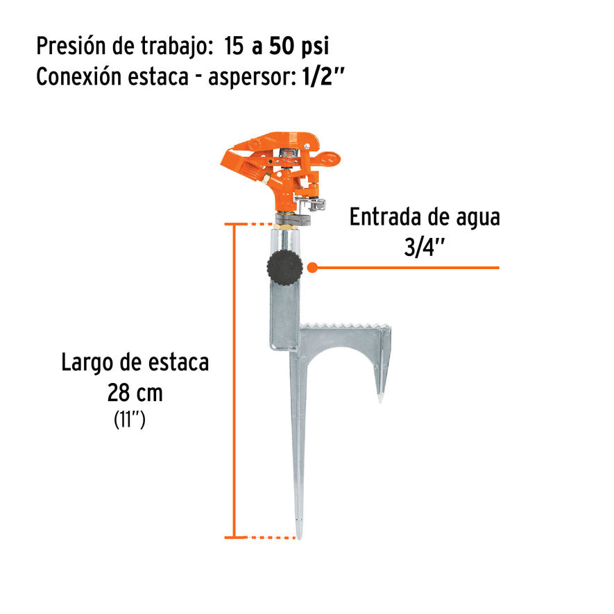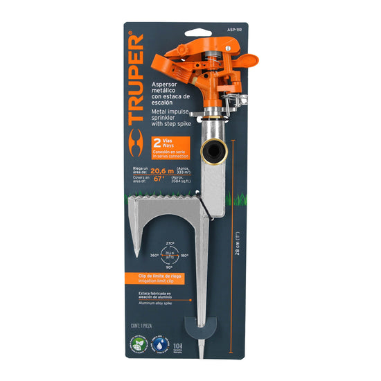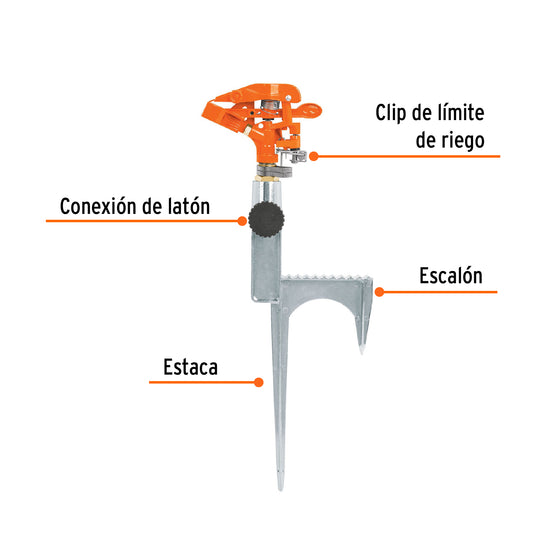 Aspersor metálico 14' dos vías, reforzado, estaca de escalón Caja con 3, 10323