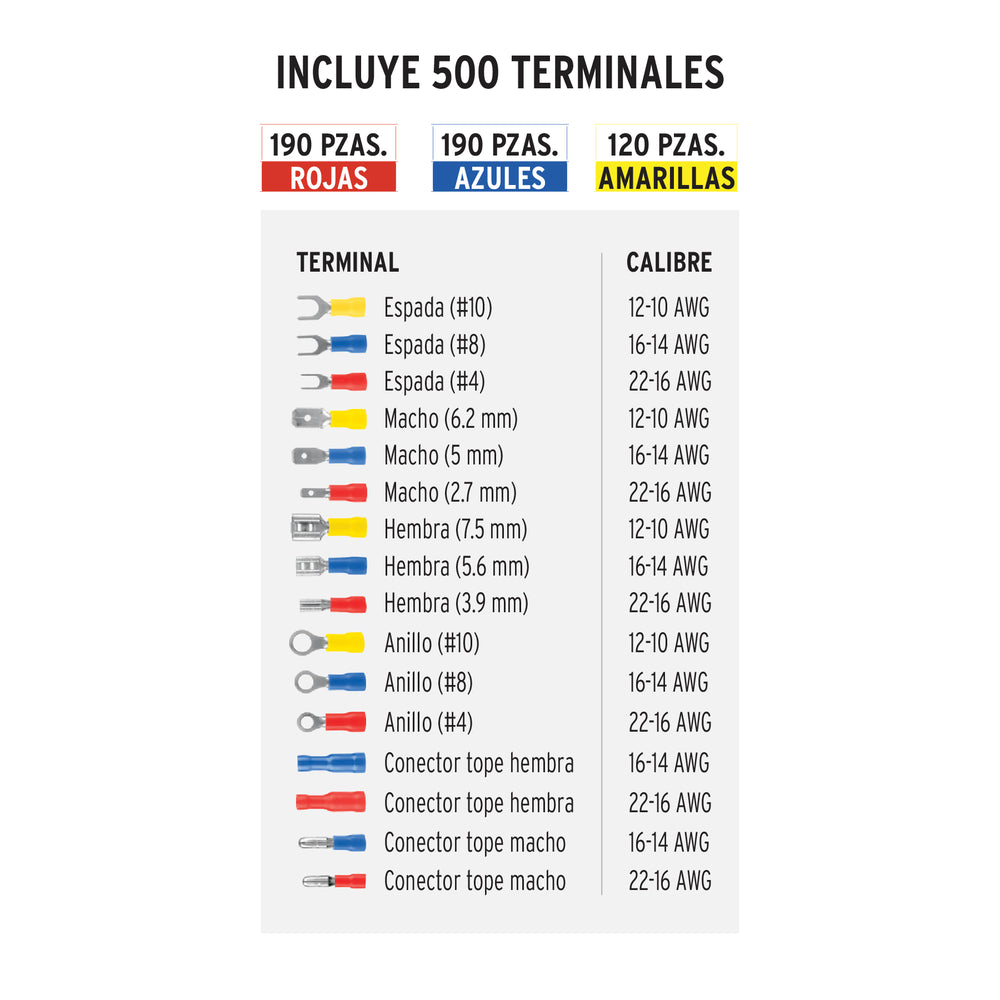 Para crimpar terminales de cable, calibres 24 a 14 AWG