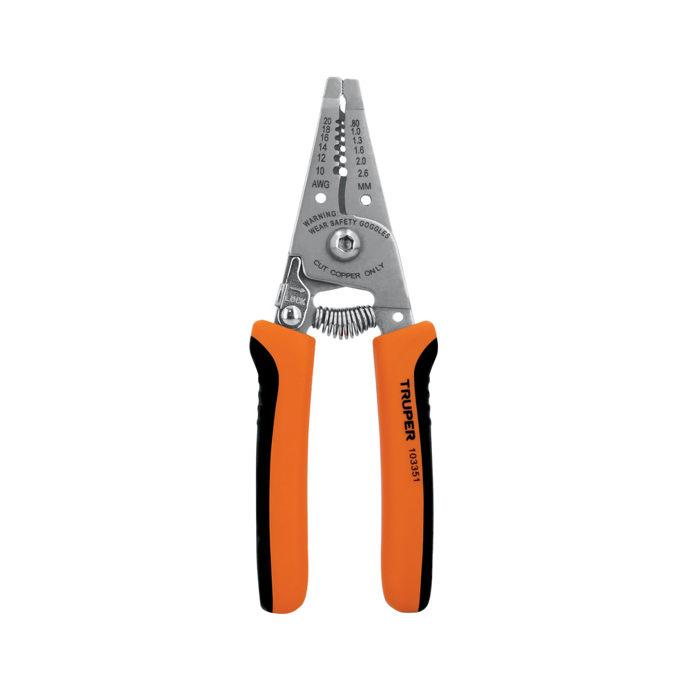 - Para cortar y pelar cables calibres 20 a 10 AWG