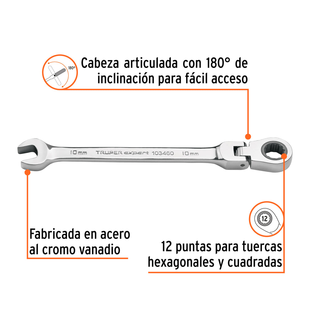 Llave combinada con matraca 10 mm flexible, Expert Caja con 3, 103460Llave combinada con matraca 10 mm flexible, Expert Caja con 3, 103460Llave combinada con matraca 10 mm flexible, Expert Caja con 3, 103460