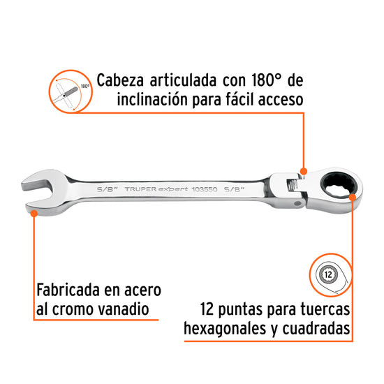 Llave combinada con matraca 5/8' flexible, Expert Caja con 3, 103550Llave combinada con matraca 5/8' flexible, Expert Caja con 3, 103550Llave combinada con matraca 5/8' flexible, Expert Caja con 3, 103550