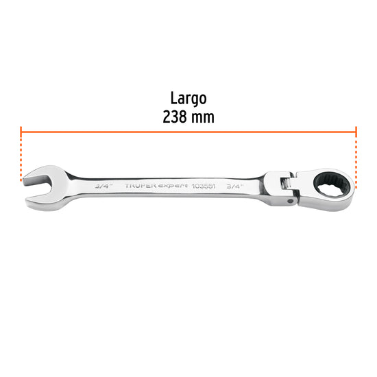 Mecanismo con 90 dientes que permite apretar o aflojar con un movimiento mínimo en áreas estrechas