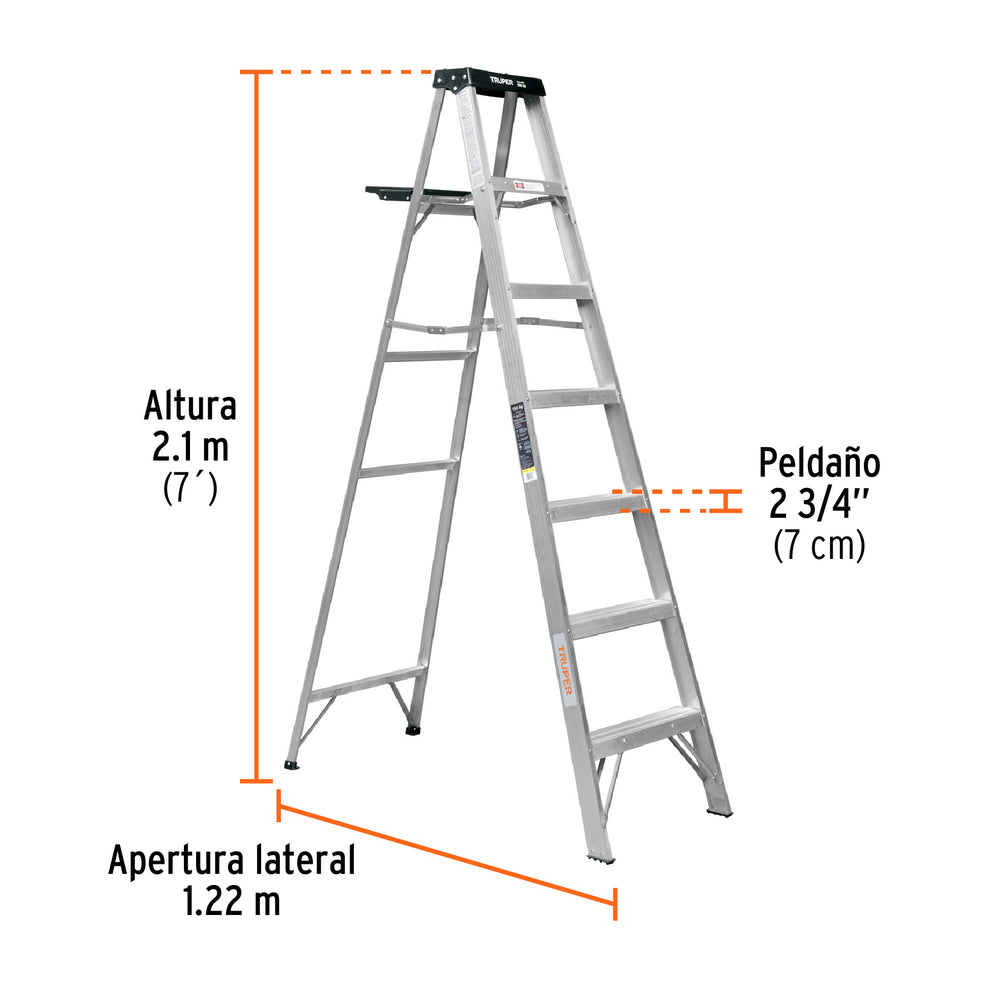 Escalera de tijera tipo III 6 escalones y bandeja, Truper, 10437