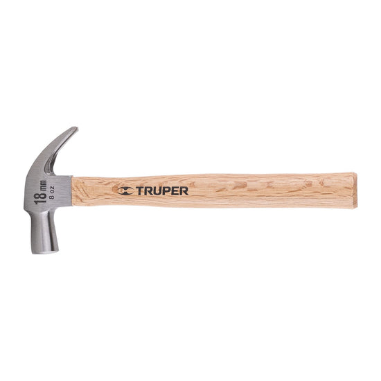 Martillo cabeza cónica 18 mm uña curva, mango madera, TRUPER Caja con 6, 10554