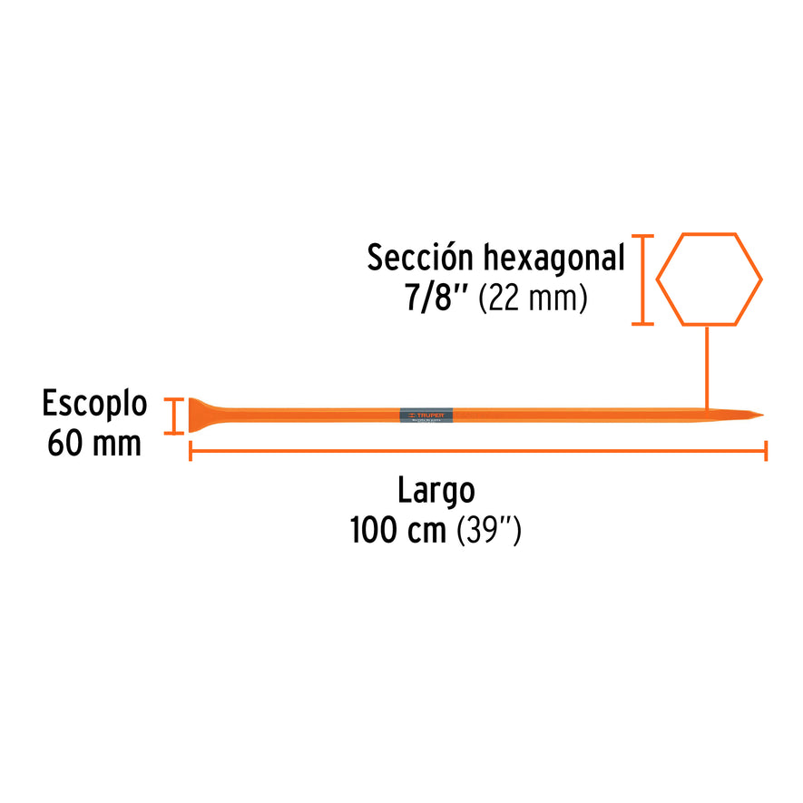 Barreta de punta de 7/8' x 100 cm, escoplo 60 mm, Truper Caja con 2, 10750