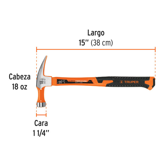 - Cabeza de acero con cara fresada que permite un impacto sin deslizamiento