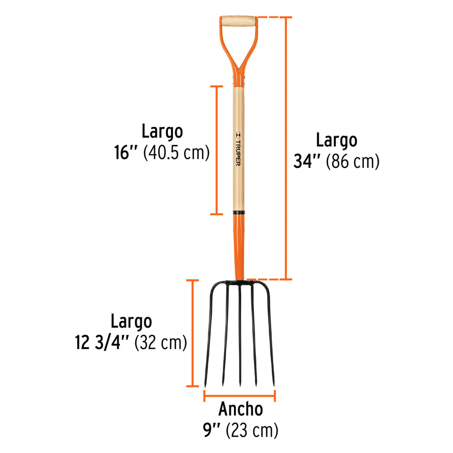 Bieldo para paja, 5 dientes, mgo 34', puño 'Y', TRUPER Caja con 3, 11015