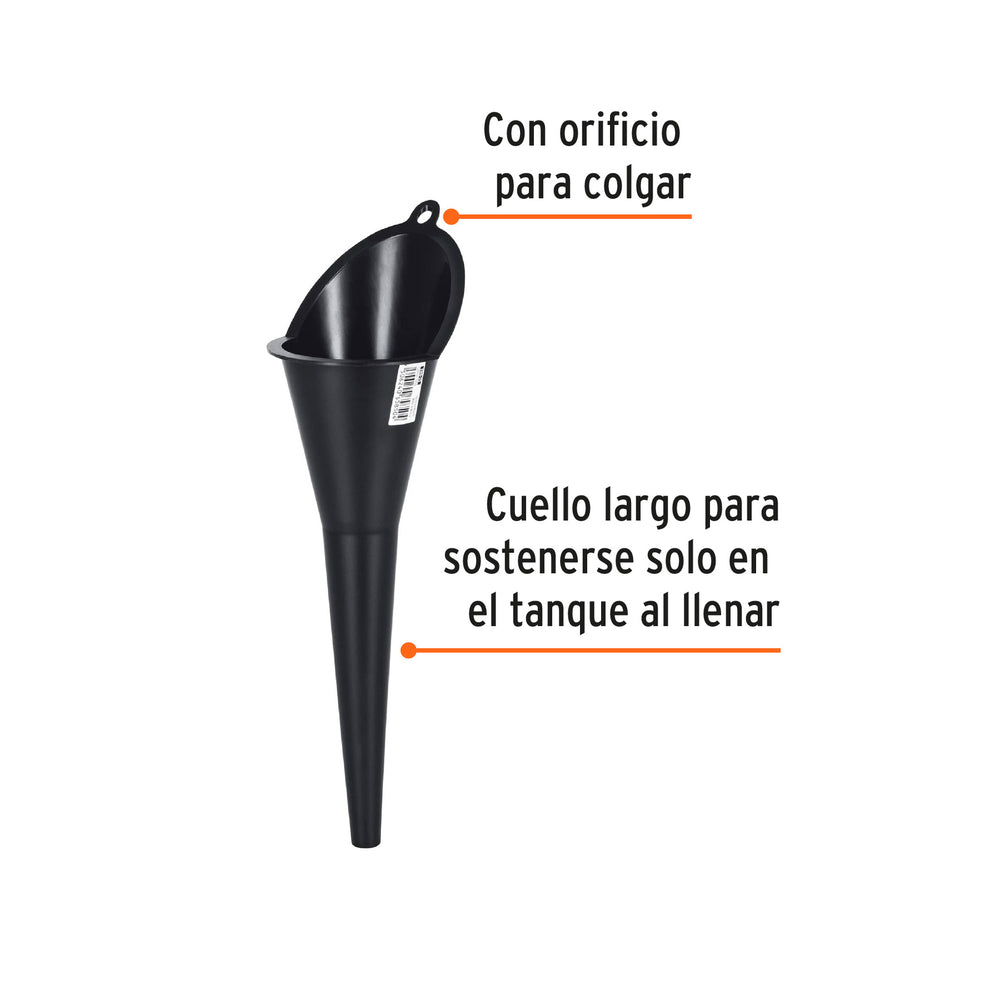 • Cuello largo para sostenerse solo en el tanque a rellenar