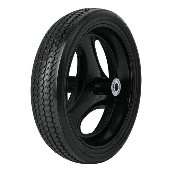 Llanta imponchable suave y ligera de poliuretano, facilita el acarreo y reduce la fatiga