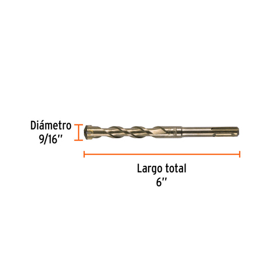 Broca SDS Plus 9/16 x 6', Truper Caja con 5, 11273