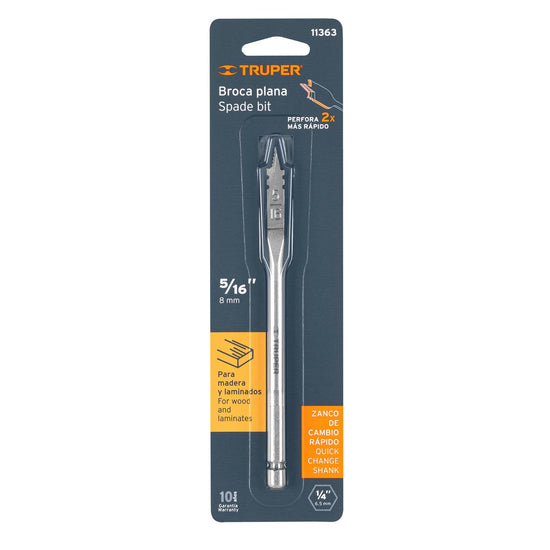 Broca plana de manita 5/16' para madera, Truper Caja con 6, 11363Broca plana de manita 5/16' para madera, Truper Caja con 6, 11363Broca plana de manita 5/16' para madera, Truper Caja con 6, 11363