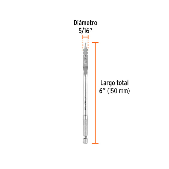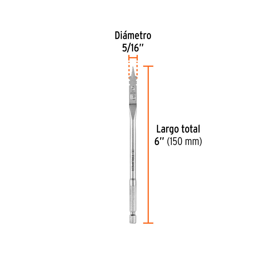 Broca plana de manita 5/16' para madera, Truper Caja con 6, 11363