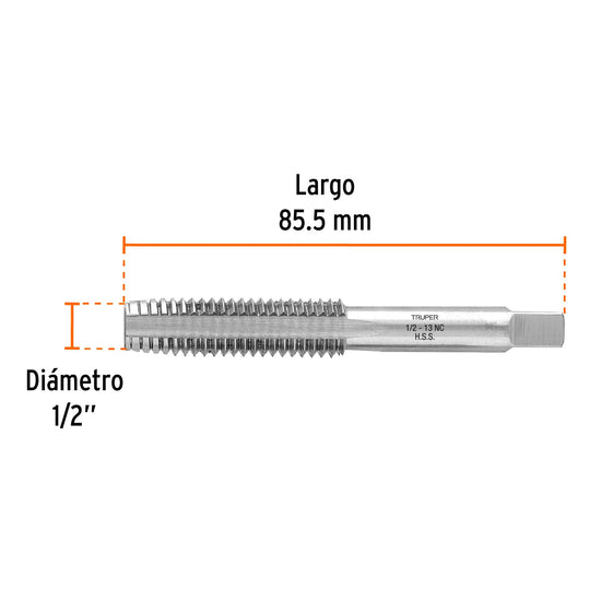 Machuelo semicónico 1/2' x 13 cuerda gruesa, Truper Caja con 5, 11413