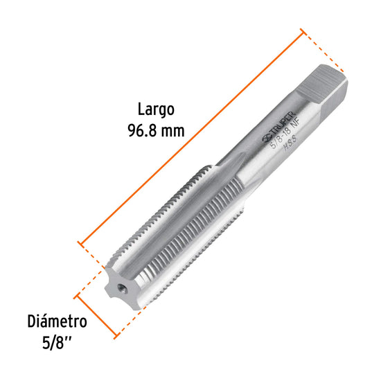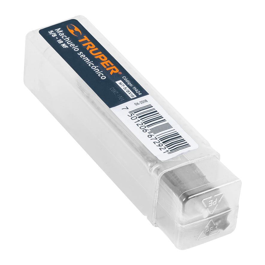 Machuelo semicónico 5/8'x18 UNF, estuche individual, Truper, 11424