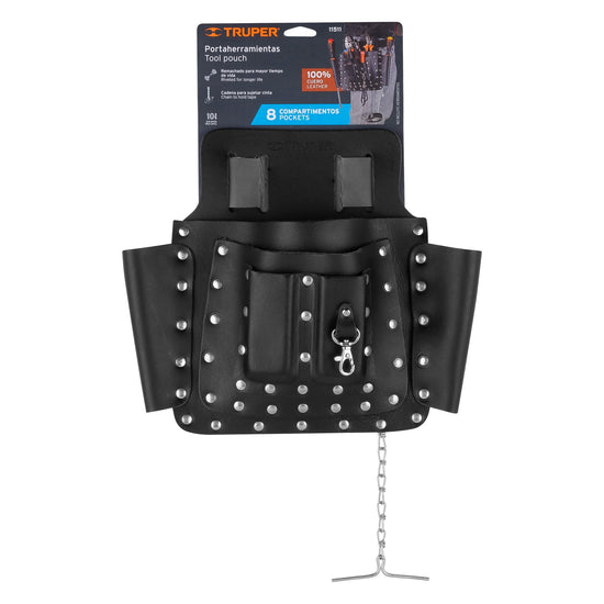 Porta herramientas de cuero con 8 compartimentos, Truper Caja con 4, 11511