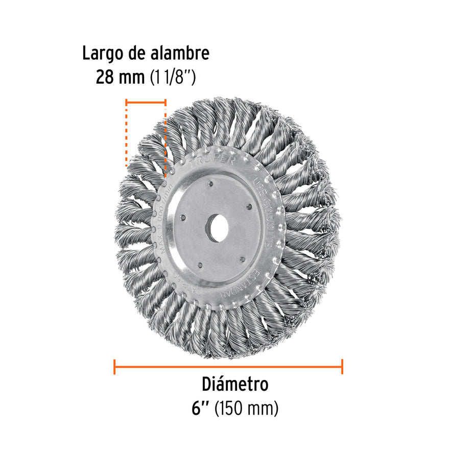 Carda trenzado grueso 6' x 5/8' para esmeril, Truper Caja con 4, 11599