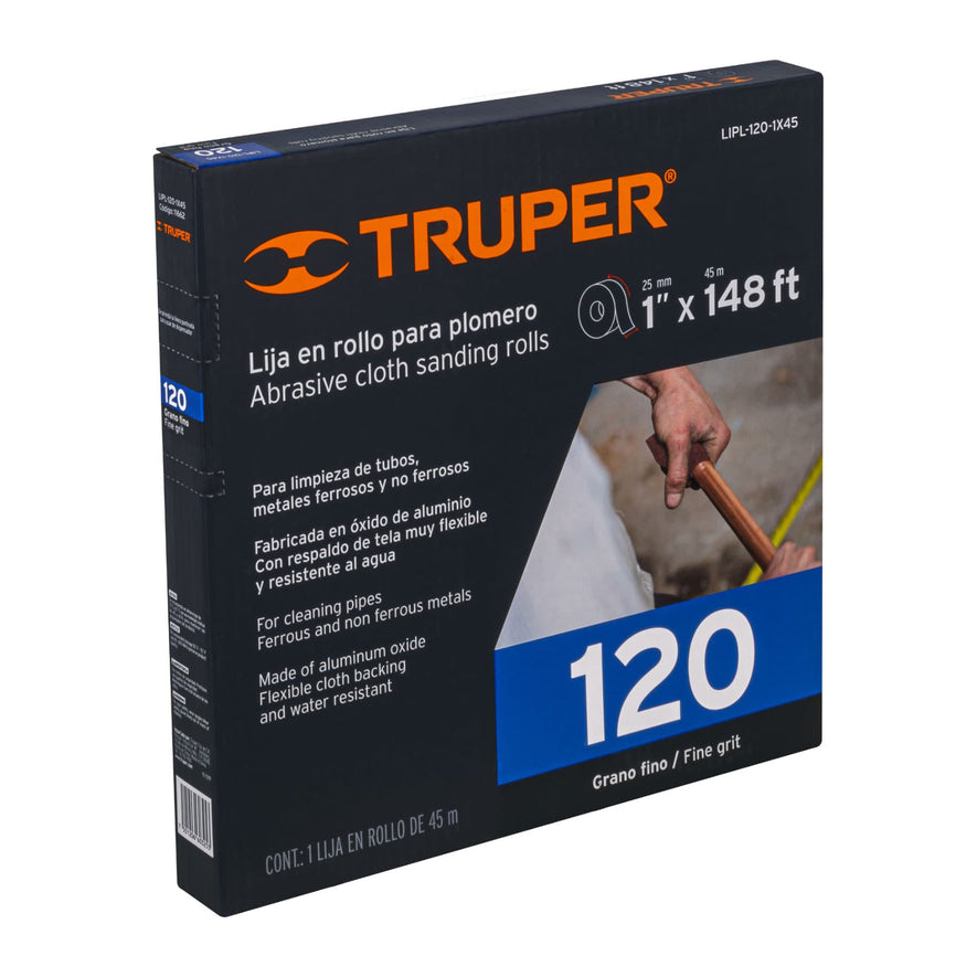 Rollo de 45 m de lija para plomero grano 120 ancho 1', 11662