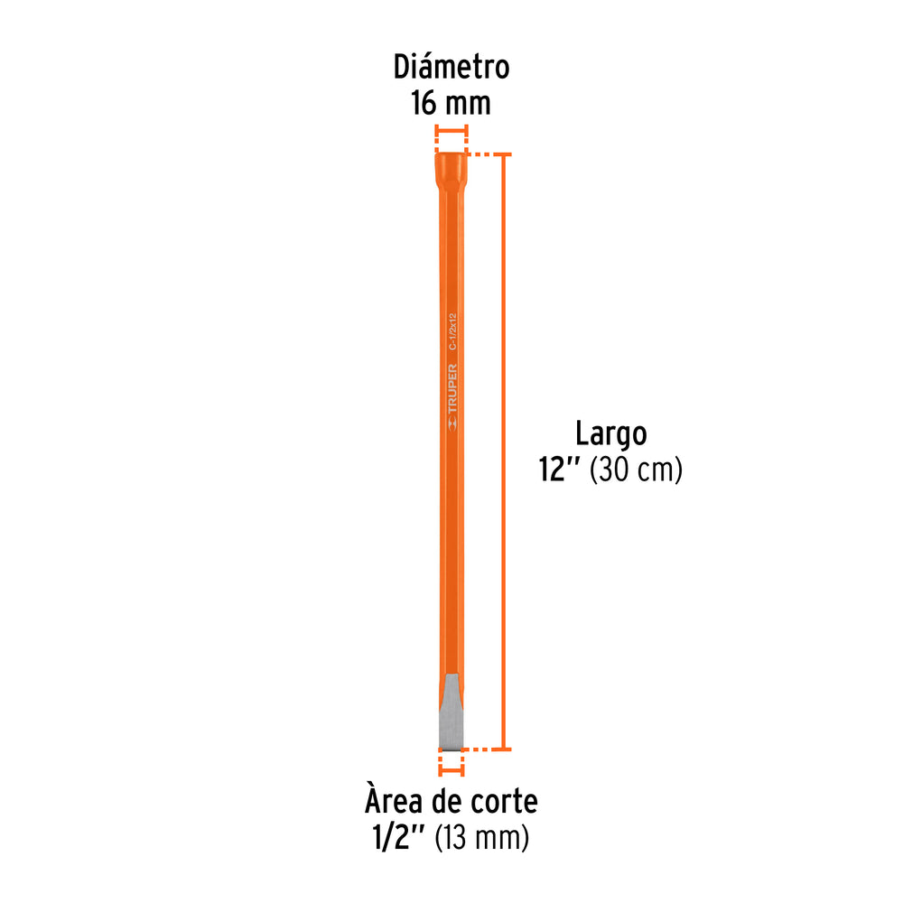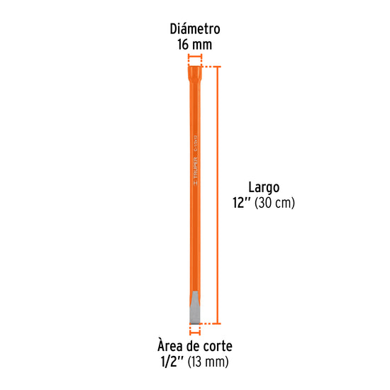 Cincel de corte frío de 1/2 X 12', Truper Caja con 6, 12124