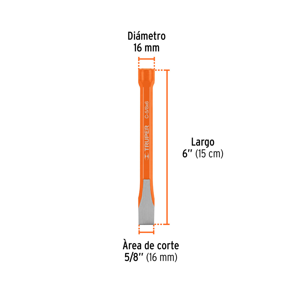 Cincel de corte frío de 5/8 X 6', Truper Caja con 6, 12127