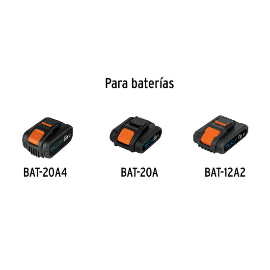 Para baterías (12 V) modelo BAT-20A4 y (20 V) modelos BAT-20A y BAT-12A2 marca Truper®