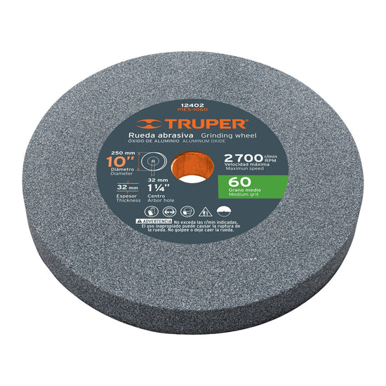 Rueda abrasiva p/esmeril 10X1 1/4', óxido aluminio, grano 60 Caja con 2, 12402Rueda abrasiva p/esmeril 10X1 1/4', óxido aluminio, grano 60 Caja con 2, 12402Rueda abrasiva p/esmeril 10X1 1/4', óxido aluminio, grano 60 Caja con 2, 12402