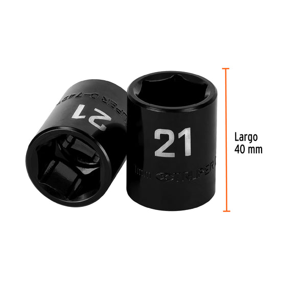 Dado cuadro 1/2' de impacto 6 puntas de 21 mm, Truper Caja con 6, 12421