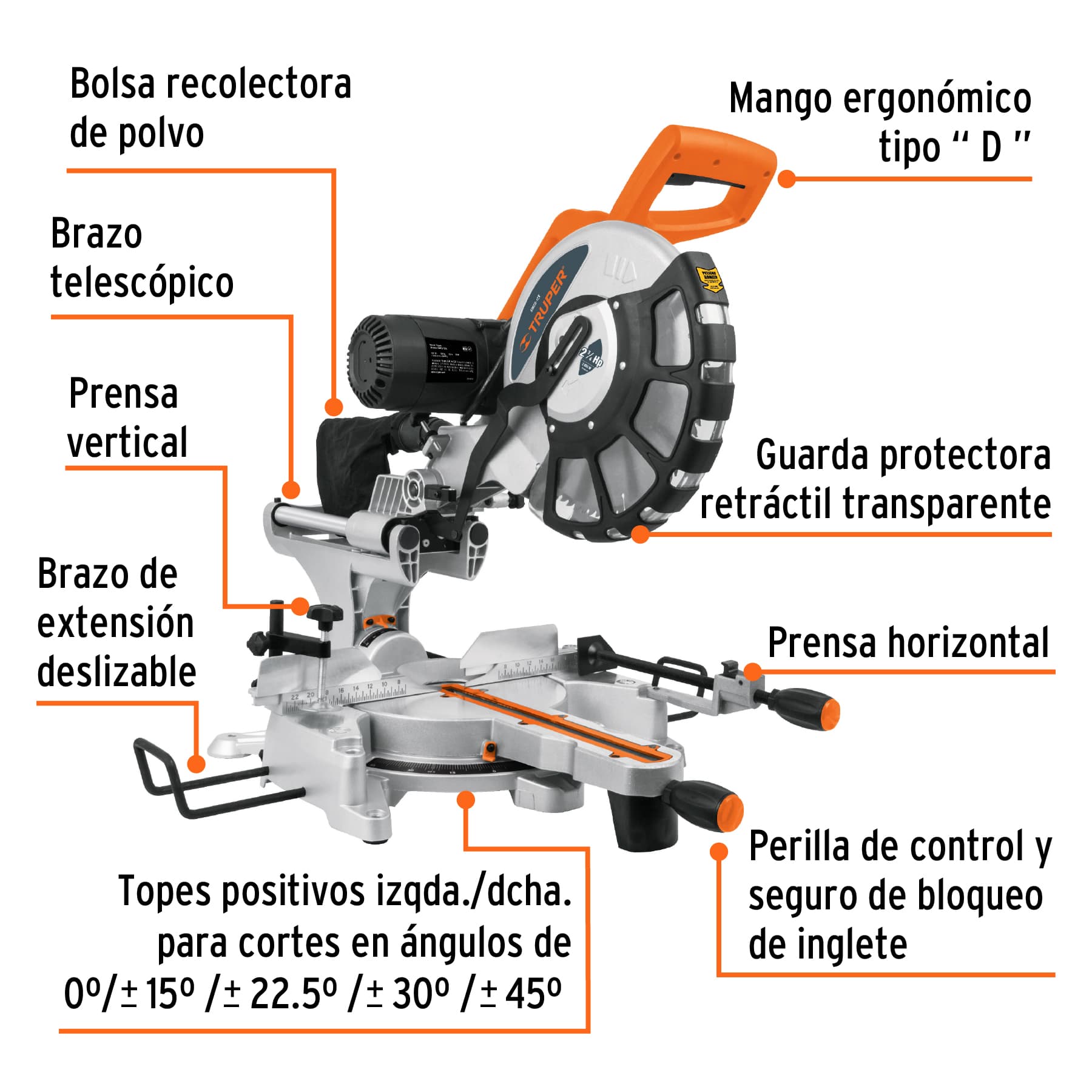 Sierra de inglete 12' de 2000 W telescópica compuesta, 12464