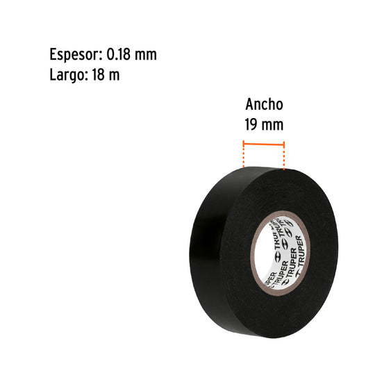 Cinta de aislar de 18 m x 19 mm, negra en blíster, Truper Caja con 8, 12499Cinta de aislar de 18 m x 19 mm, negra en blíster, Truper Caja con 8, 12499
