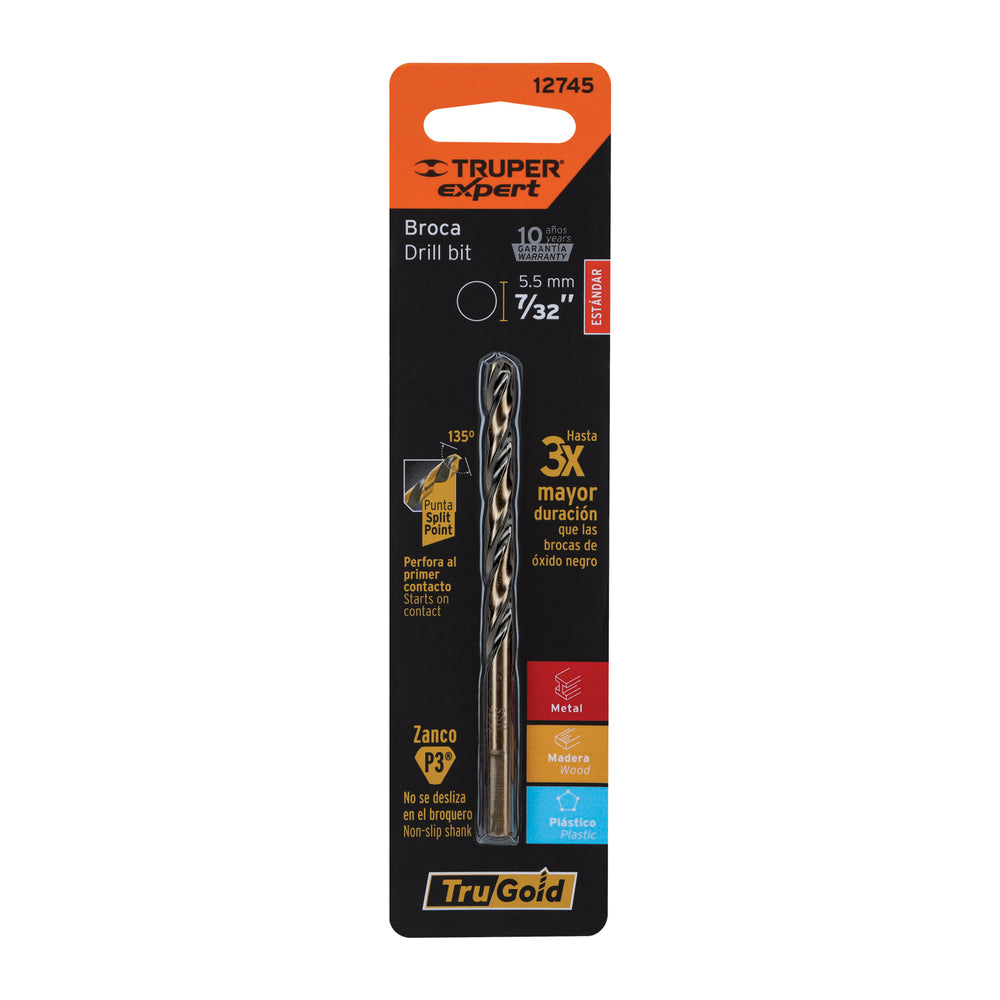 Broca HSS 7/32' Trugold para metal en blíster, Expert Caja con 10, 12745Broca HSS 7/32' Trugold para metal en blíster, Expert Caja con 10, 12745Broca HSS 7/32' Trugold para metal en blíster, Expert Caja con 10, 12745