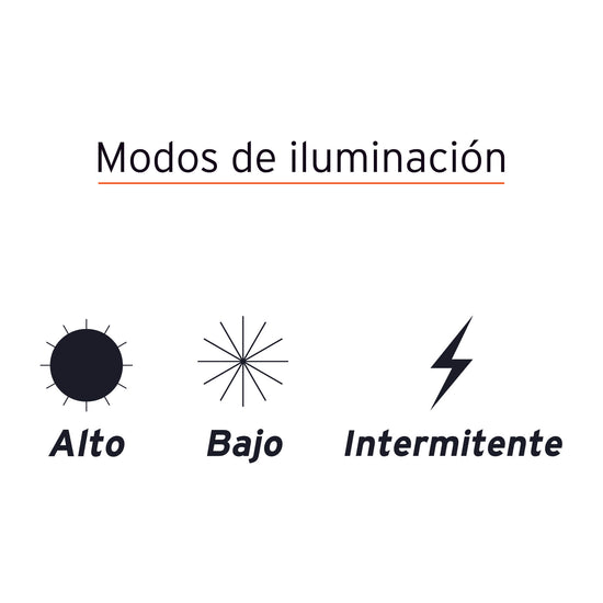 - Modos de iluminación: Alto, bajo e intermitente