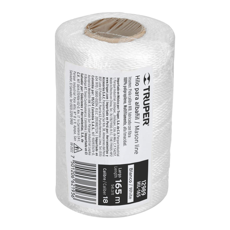 Carrete con 165 m de hilo para albañil blanco, Truper Caja con 12, 12989