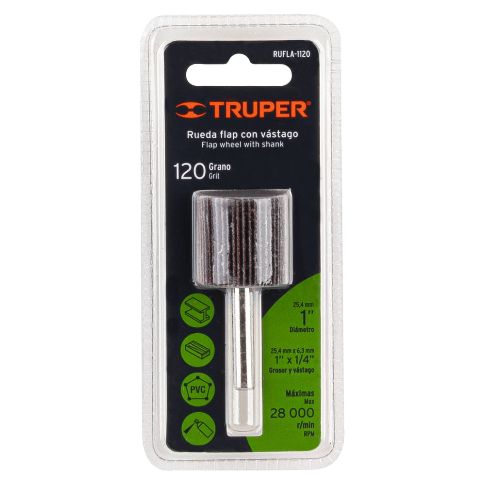Rueda flap de 1', grano 120, Truper Caja con 6, 13035Rueda flap de 1', grano 120, Truper Caja con 6, 13035Rueda flap de 1', grano 120, Truper Caja con 6, 13035