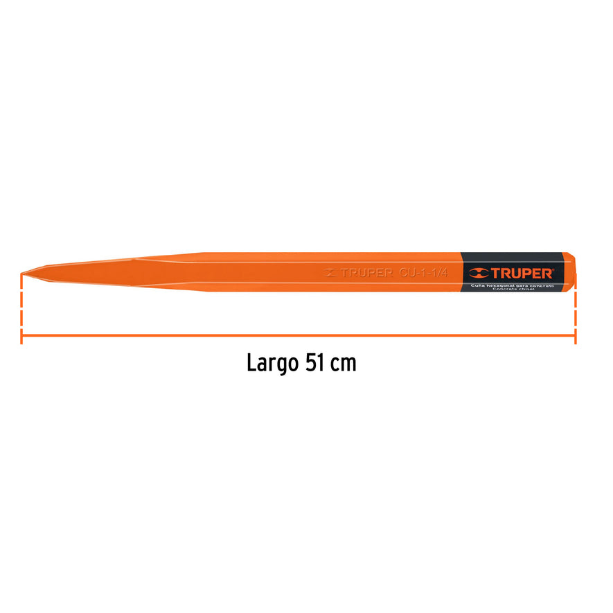 Fabricada en acero alto carbono con tratamiento térmico diferenciado en punta y cabeza